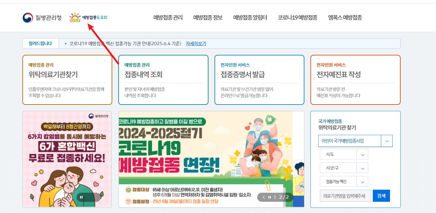 - 질병관리청 예방접종도우미 접속◀️◀️
